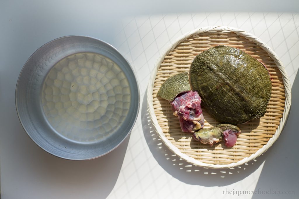 Before we begin, we also want to emphasise some key points. Firstly, if you’re being a whole suppon from a market, chances are they’re still alive and sold in nets to stop them from escaping. Here, you want to be careful as just like any other turtle, they’re quick to take a snap at your hands if you’re not careful, which will be an excruciating experience. And unlike lobsters sold in the west with their claws bound, suppons are just sold as is. There is a Japanese saying that once a suppon bites, it will not let go until thunder rumbles: 「すっぽんは噛み付いたら雷が鳴るまで離さない」, and whilst this is an exaggeration, it is still a warning to us. We’ve been told at restaurants that if you put the suppon back underwater or hold still for around 10 minutes the suppon will release its grip but we’d always recommend seeking medical attention if you get bitten by a turtle that won’t let go.