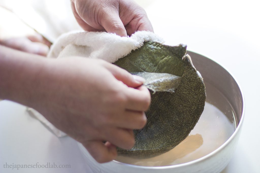 Prepare a large pot of water at 80 to 90°C and submerge each piece (including the plastron and carapace) separately for about a minute and peel away the thin outer skin of the turtle.