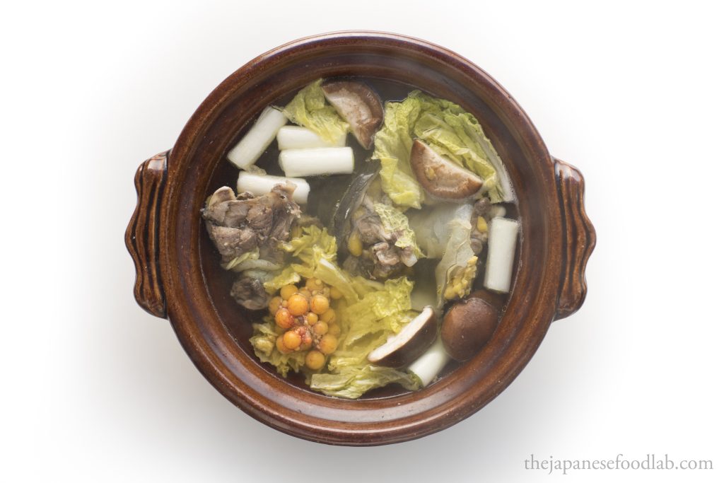 Most of the heavy lifting to make this dish is already done when making the suppon stock. After that, you just have to assemble everything together. Fill the donabe with the stock and season with light soy sauce to taste. Add the pre-cooked meat and additional ingredients until cooked. If you have unlaid eggs from a female, add them in after the vegetables have cooked and simmer gently for around 3 to 4 minutes until just cooked. This entire process can be done at the table on a portable stove in front of guests. Serve.