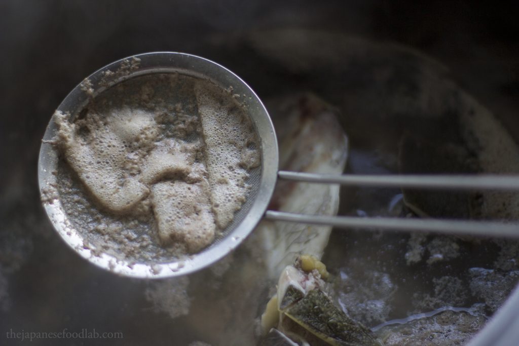 Aromatics wise, a combination of kombu, ginger and leeks are usually used but are added at different times. Some places choose to omit the ginger to taste. Once made, the stock can be seasoned to taste with salt or light soy sauce, or further reduced to desired concentration.