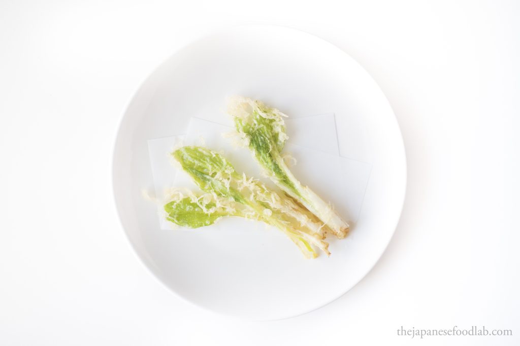 Whilst many of the Japanese spring sansai (mountain vegetables) are famously bitter, urui (ウルイ), the young shoots of certain Hosta varieties, has a clean, almost watery-like sweetness that can be brought out through frying as tempura.